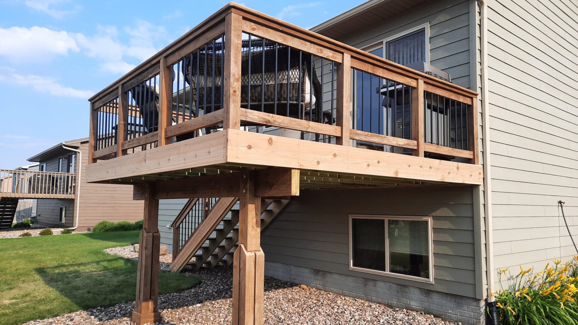 We define contracting as projects that do require a permit, and generally submit bids for approval. Our services include finishing basements and garages, remodeling bathrooms and kitchens, relocating laundry rooms, and more. We have a team of trusted local tradesmen that we work with (subcontract) to ensure that every facet of your project is done right. Oh, by the way… the buzz around town is 100% true, we do design and build the nicest custom hardwood decks and fences for the lowest cost in Sioux Falls.